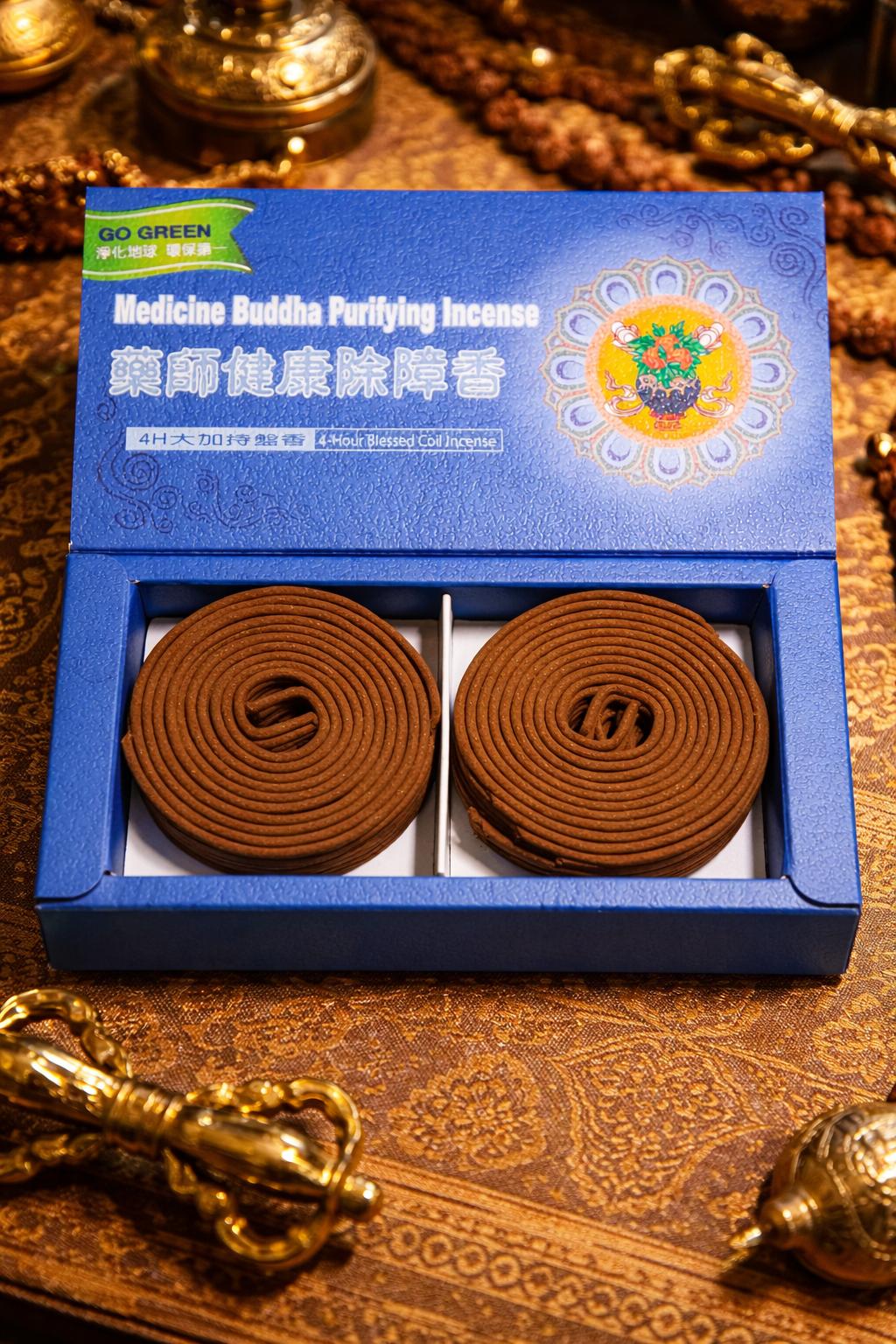 藥師佛(健康) 能消除健康的障礙,療癒我們的身心靈,也能提供我們證悟的順緣。西藏喇嘛都會教他們的弟子使用藥師佛的修法來去除身心疾病,而如法製作的藥師佛除障香可以有效避免疾病,免於橫死的威脅。燃點此香所散發出來的,是喜瑪拉雅山脈特有藥草獨特令人振奮的香氣!
