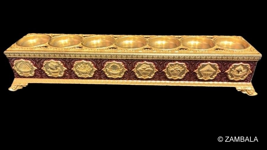 | 材質 : 鍍金雙用 燭台 + 香爐 ( 二件式  )尺寸 : 30 X 6 cm 大約尺寸敘述 :藏傳佛教的香爐不僅是供奉佛法的重要器具,也承載著深厚的文化與宗教意義。與漢傳佛教常見的立香不同,藏傳佛教多使用**臥香**,即將沉香或線香橫置於香爐內燃燒,以達到淨心禮佛的效果。 **香爐的故事與象徵**香爐在藏傳佛教中象徵**清淨、供養與祈福**。其形制多樣,常見的材質包括銅、陶瓷與木製品,其中銅製香爐尤為受歡迎,因其穩重耐用且富有莊嚴感。許多藏式香爐上刻有**吉祥八寶**或**六字真言**(唵嘛呢叭咪吽),以增強供養的功德。 在藏傳佛教的修行儀式中,焚香被視為向諸佛菩薩傳遞供養與祈願的方式。煙霧升騰象徵著修行者的願望與祈禱被帶往更高的精神境界。此外,香爐也與**煙供**儀式密切相關,這是一種透過焚燒供品來淨化環境、消除業障並利益眾生的修行方式。 此款香爐亦可用來供燈 ( 蠟燭台 ) 使用 . |